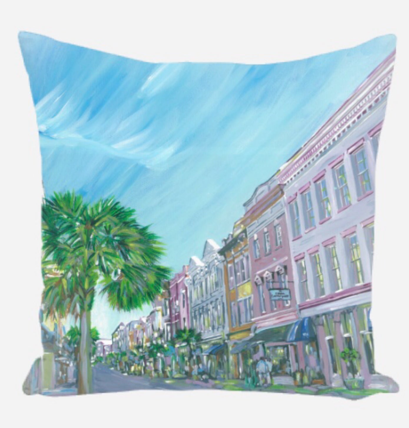 Double sided canvas pillow with King Street, Charleston design from my painting “King street”